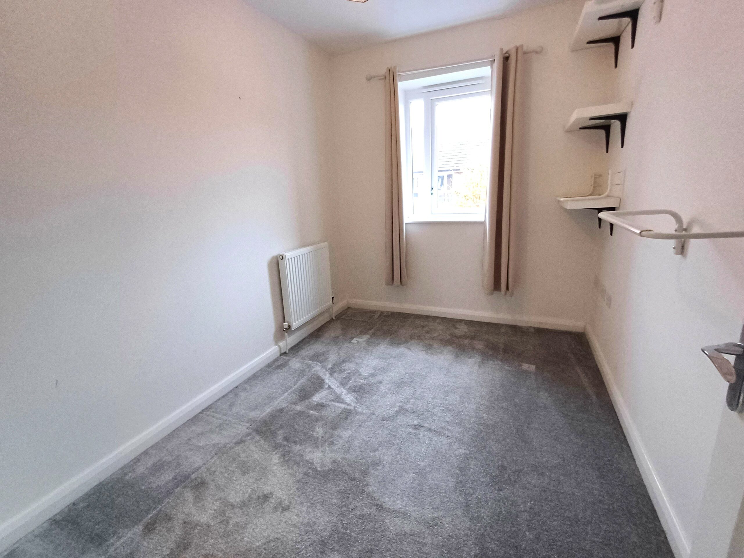 Radiator, built in storage cupboard, window to rear.