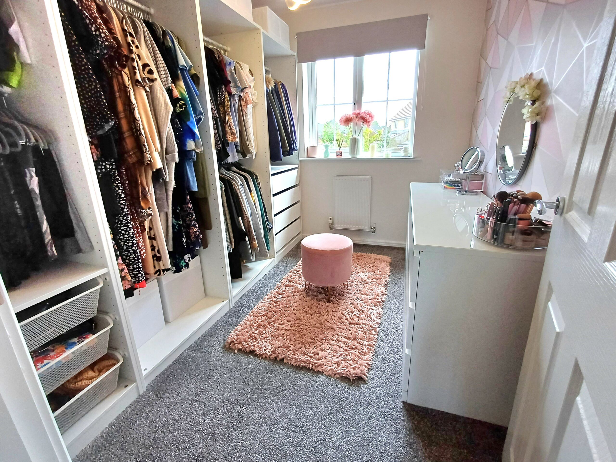 Radiator, storage cupboard, window to front.
