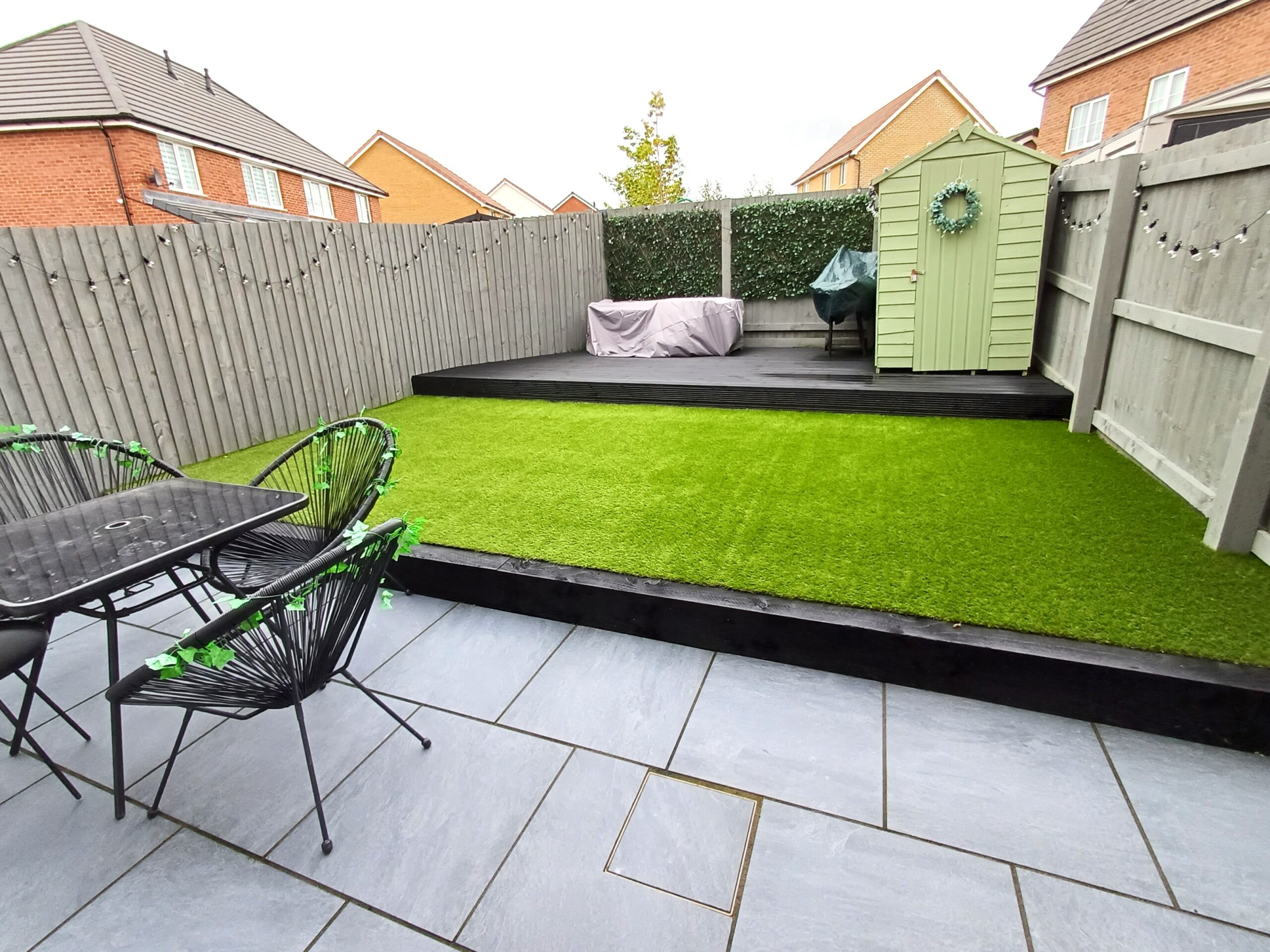 To the front there is off road parking, whilst to the rear there is a recently landscaped garden, with a flagged patio and a raised area which has decking and artificial turf.