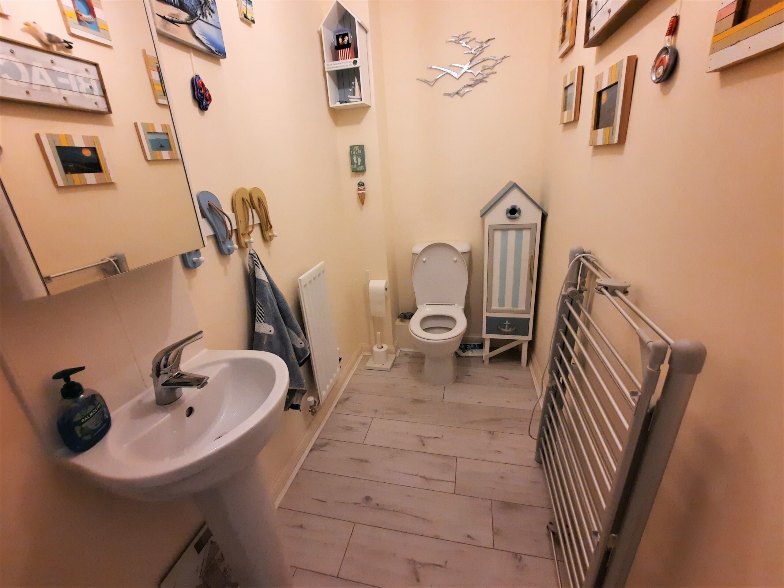 Low level WC, wash basin, radiator.