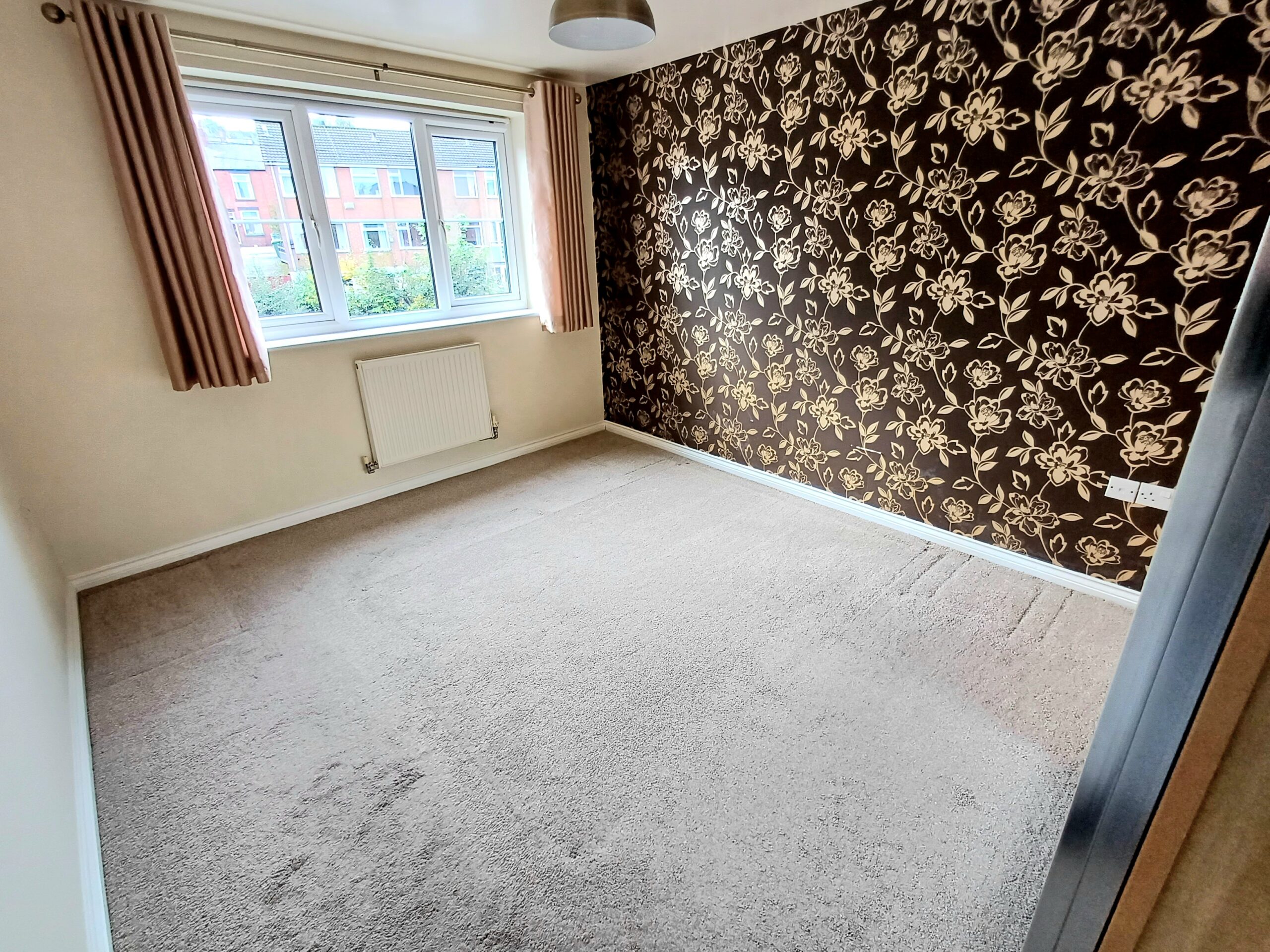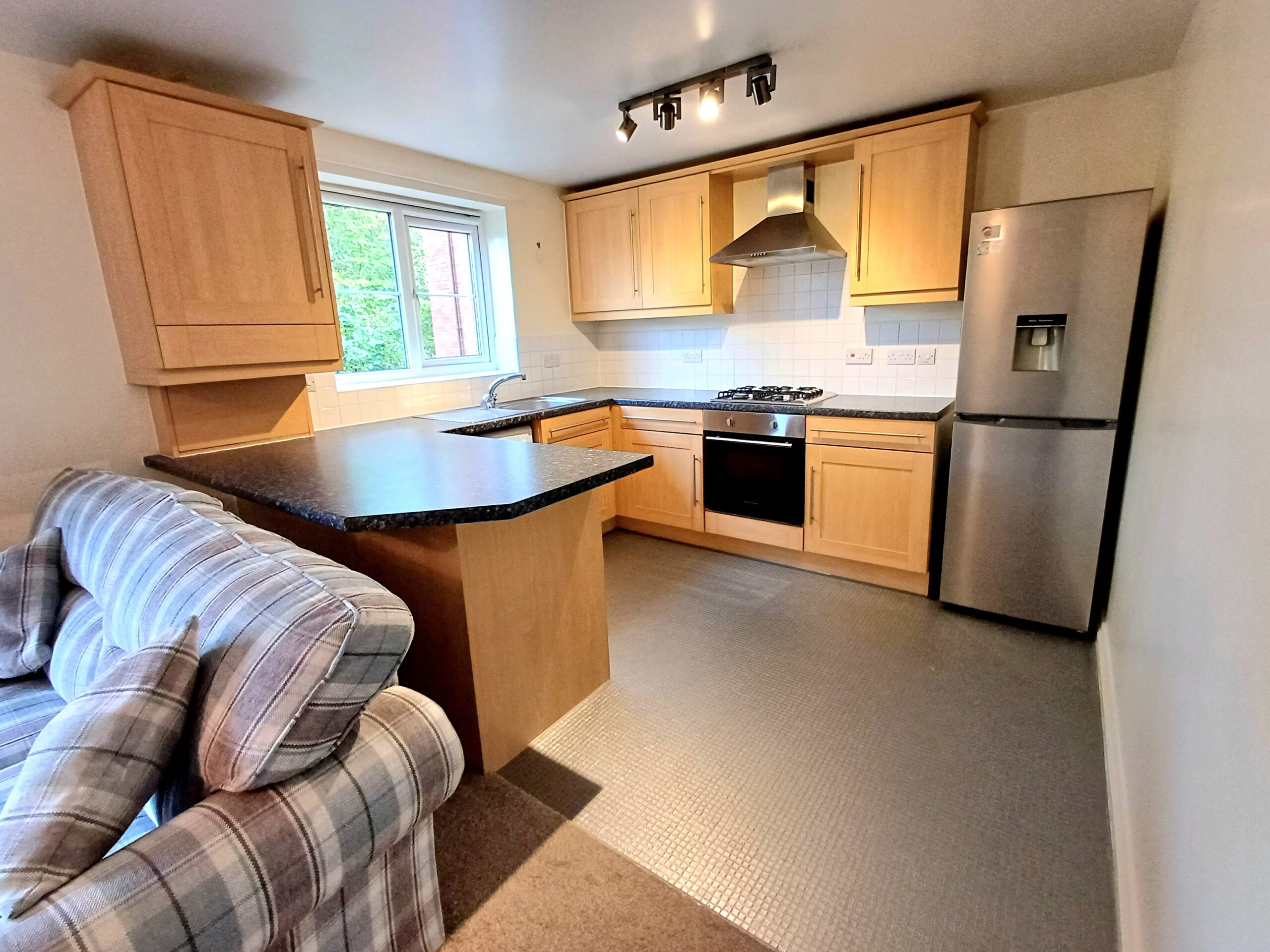 Lounge area has a radiator and French doors with a ‘Juliette Balcony’. Kitchen is fitted with modern range of wall and base units, with work surfaces over, housing stainless steel sink unit, fitted oven, four ring gas hob and stainless steel canopy extractor fan, space for fridge/freezer and washing machine, window to rear.