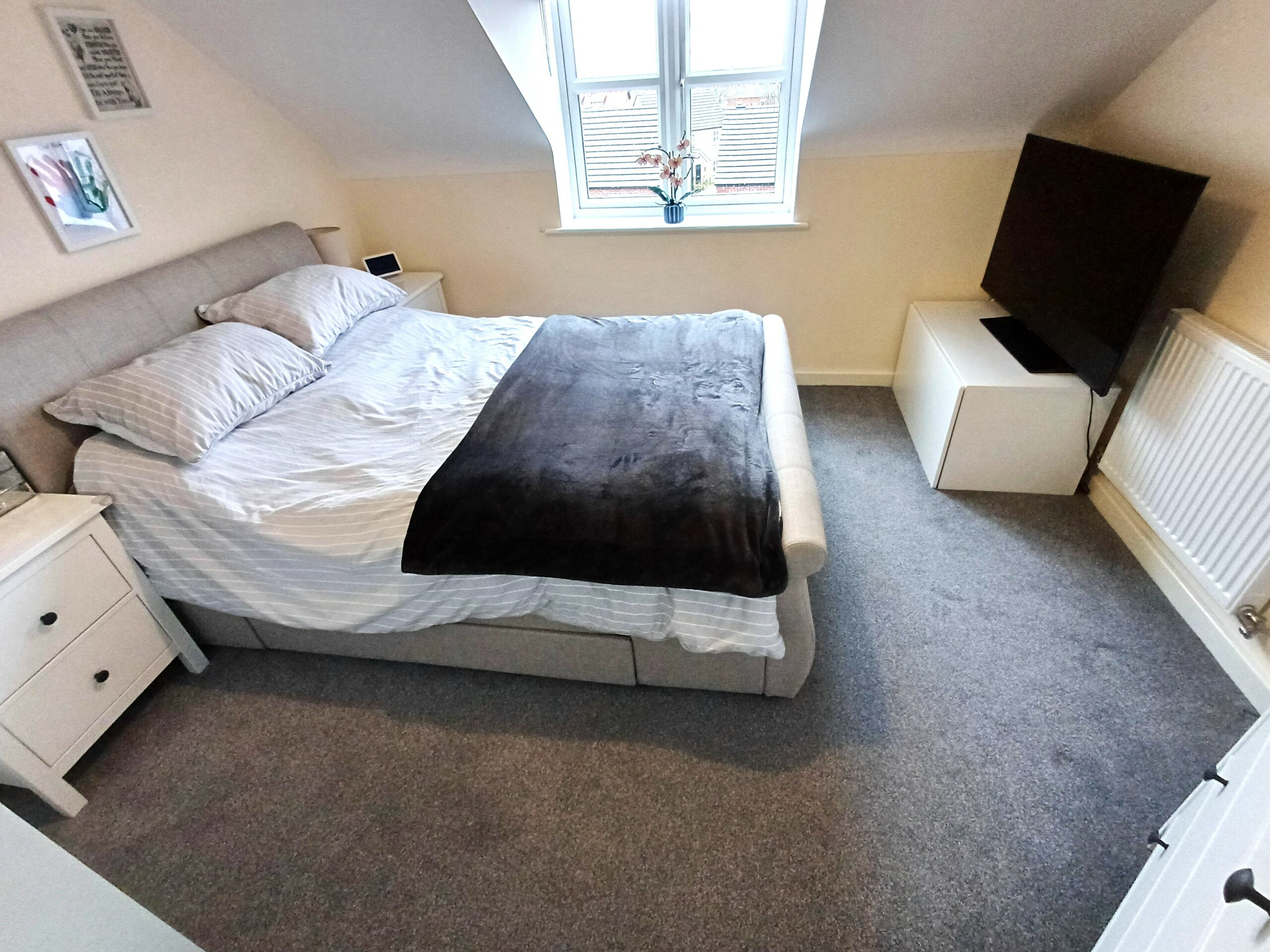 Radiator, window to rear, access to roof void.