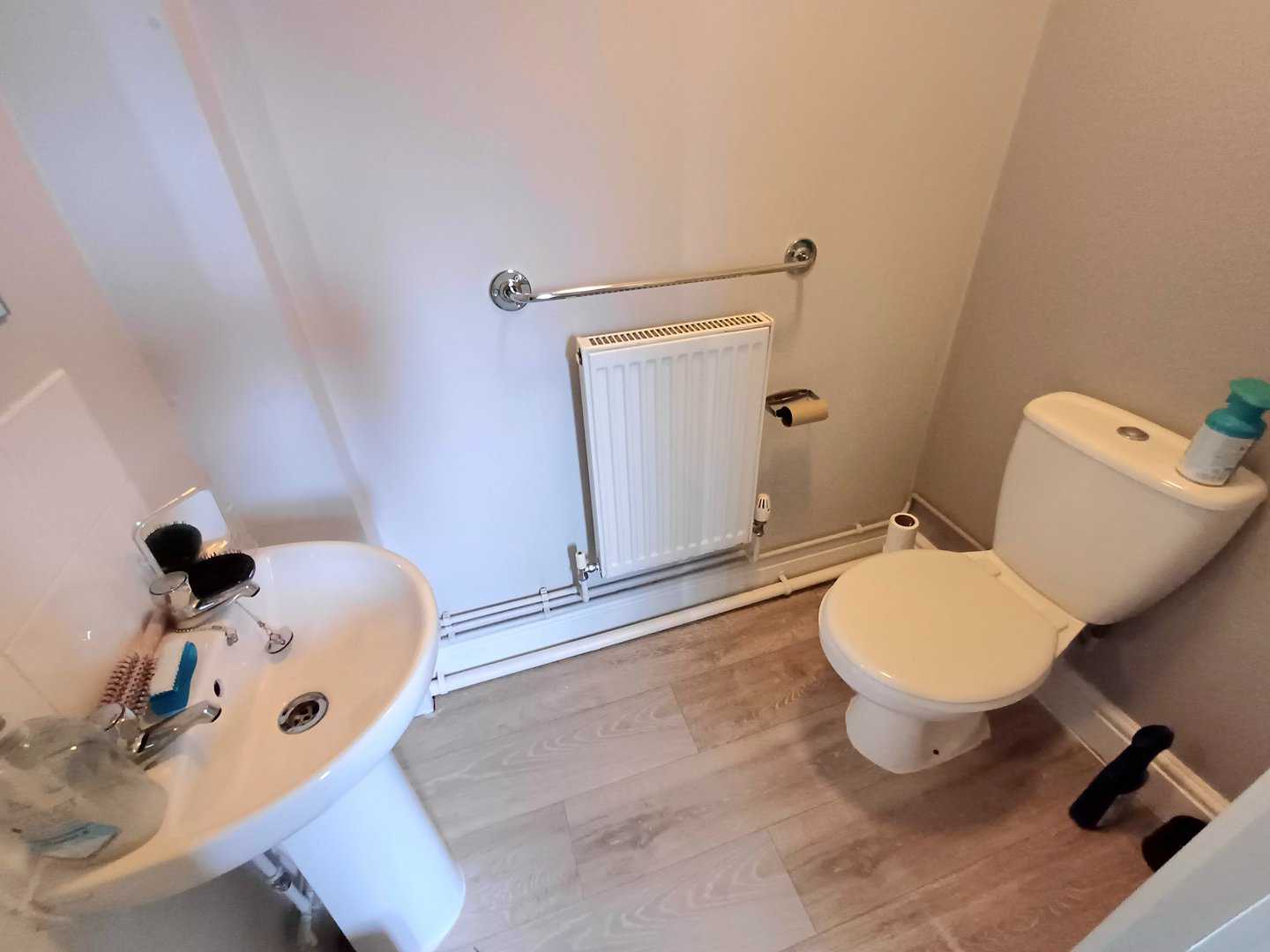 Low level WC, wash basin, radiator.