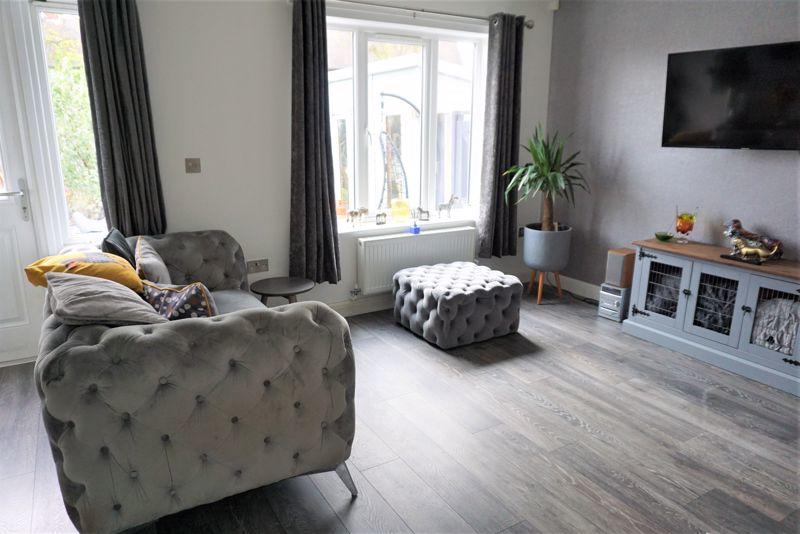 Double glazed window to the rear, double panel radiator, wood effect flooring and a further double glazed door with a double glazed panel within to the rear.