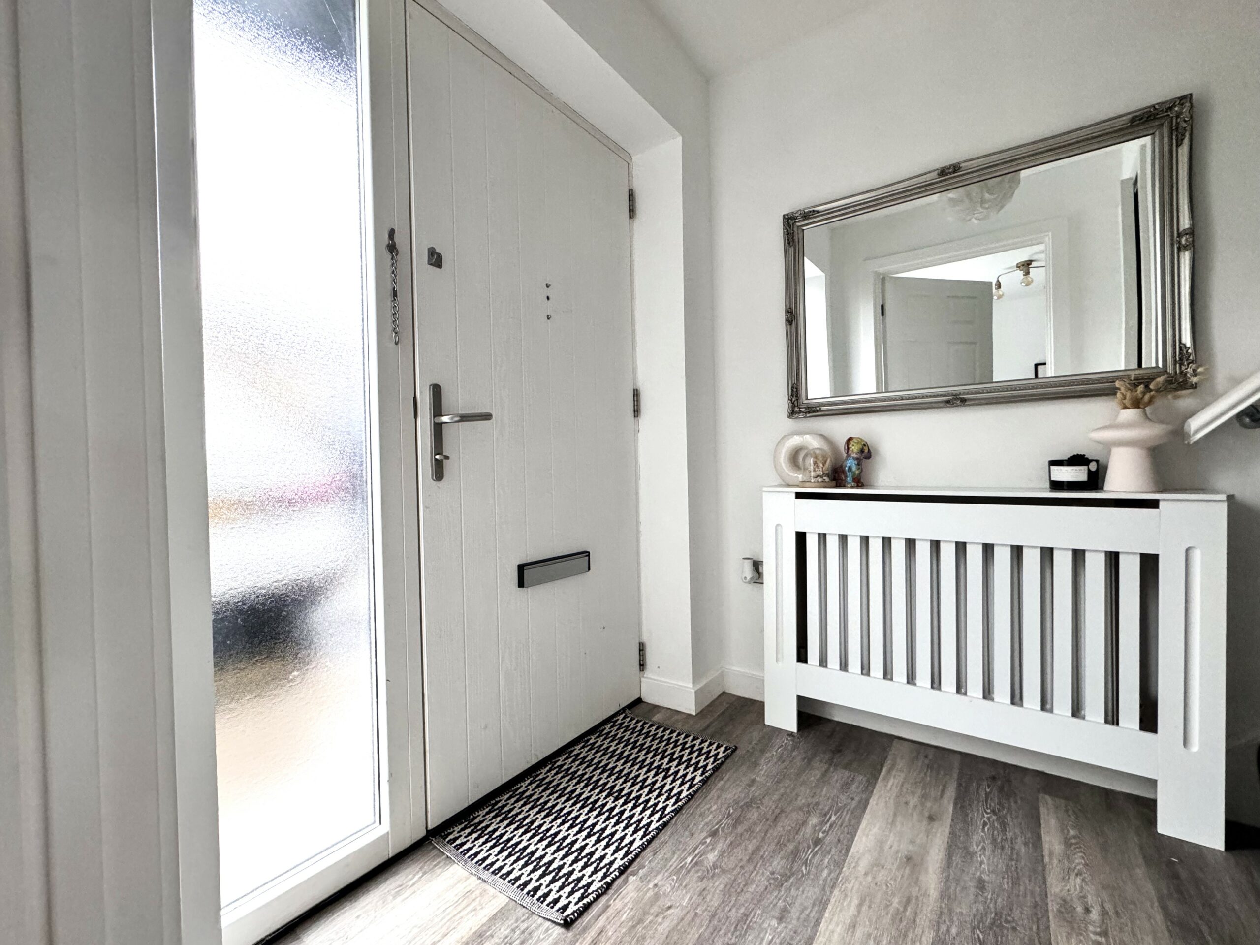 Storage cupboard, radiator, ‘Karndean’ flooring, stairs to first floor.