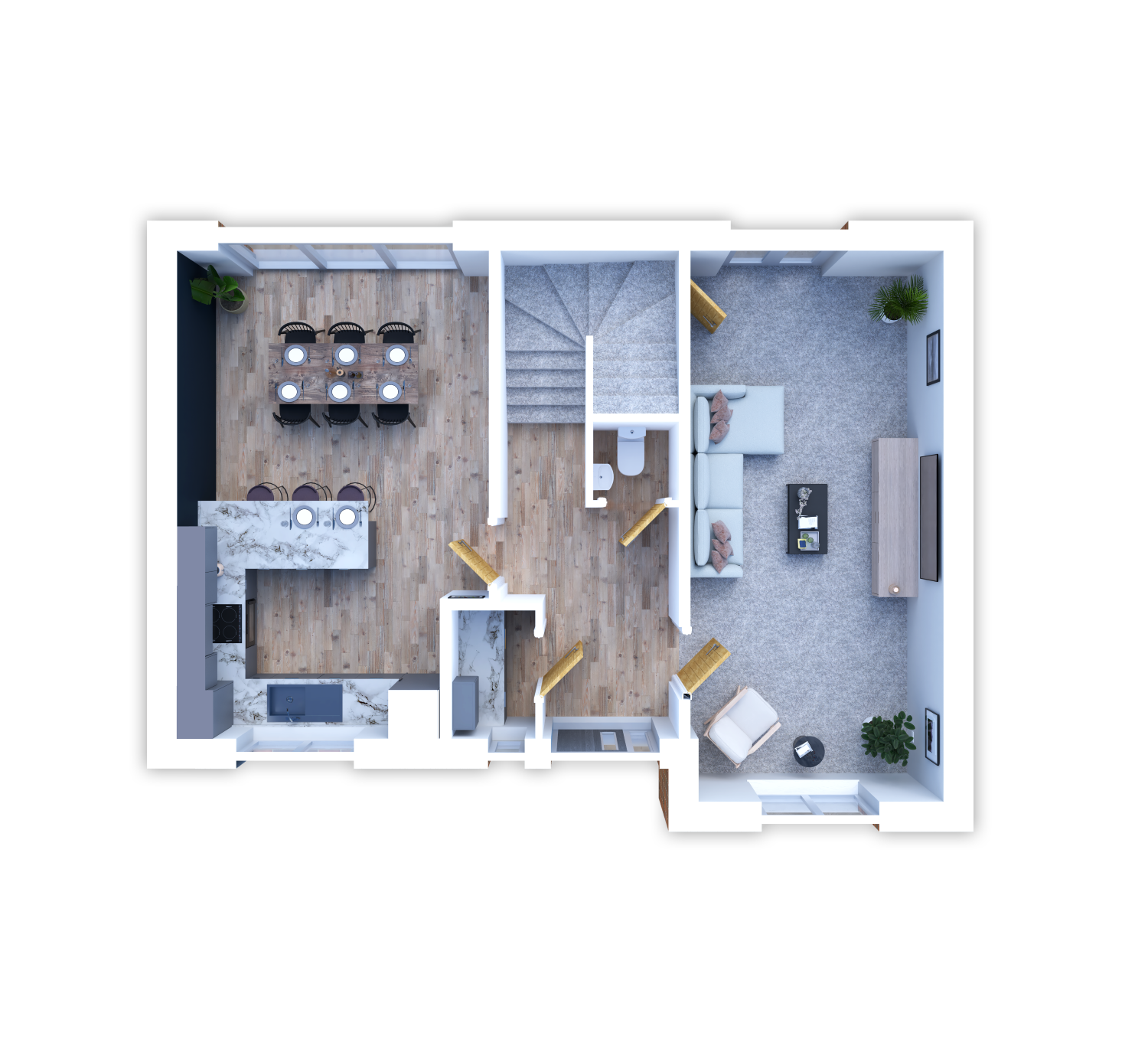 The large open plan kitchen and dining area is specifically designed for collaboration, be it family meal times, games nights or cosy nights in. The Hackett features large bi-fold doors off the kitchen area which lead directly into the garden, perfect for socialising. There is also the bathroom and utility room to meet the needs of modern living.