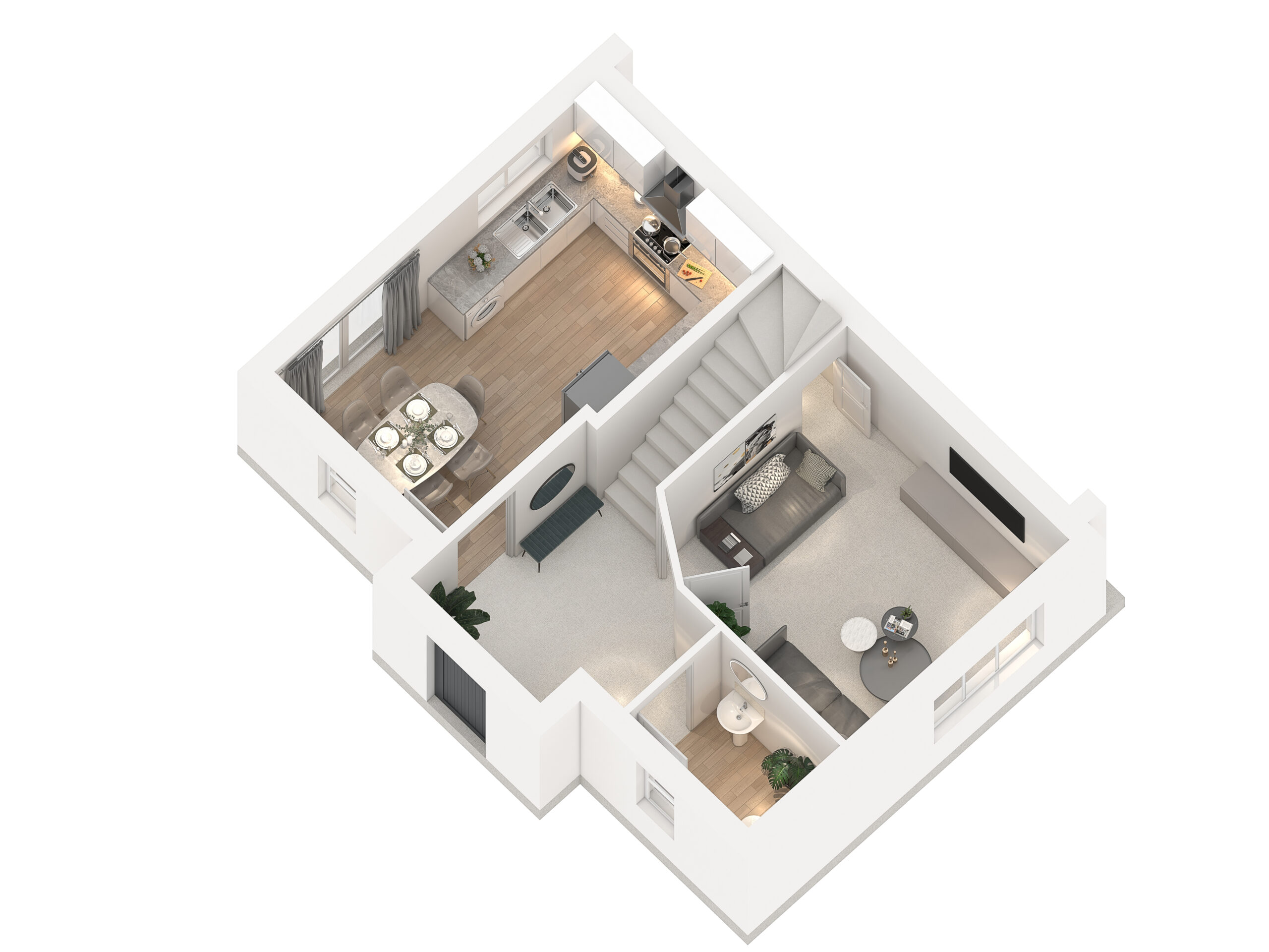 • Private turfed rear gardens